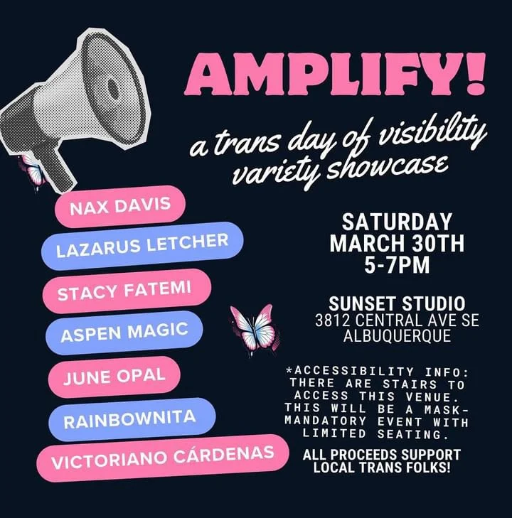 Amplify! A trans day of visibility variety showcase, march 31, 5 pm at sunset comida
