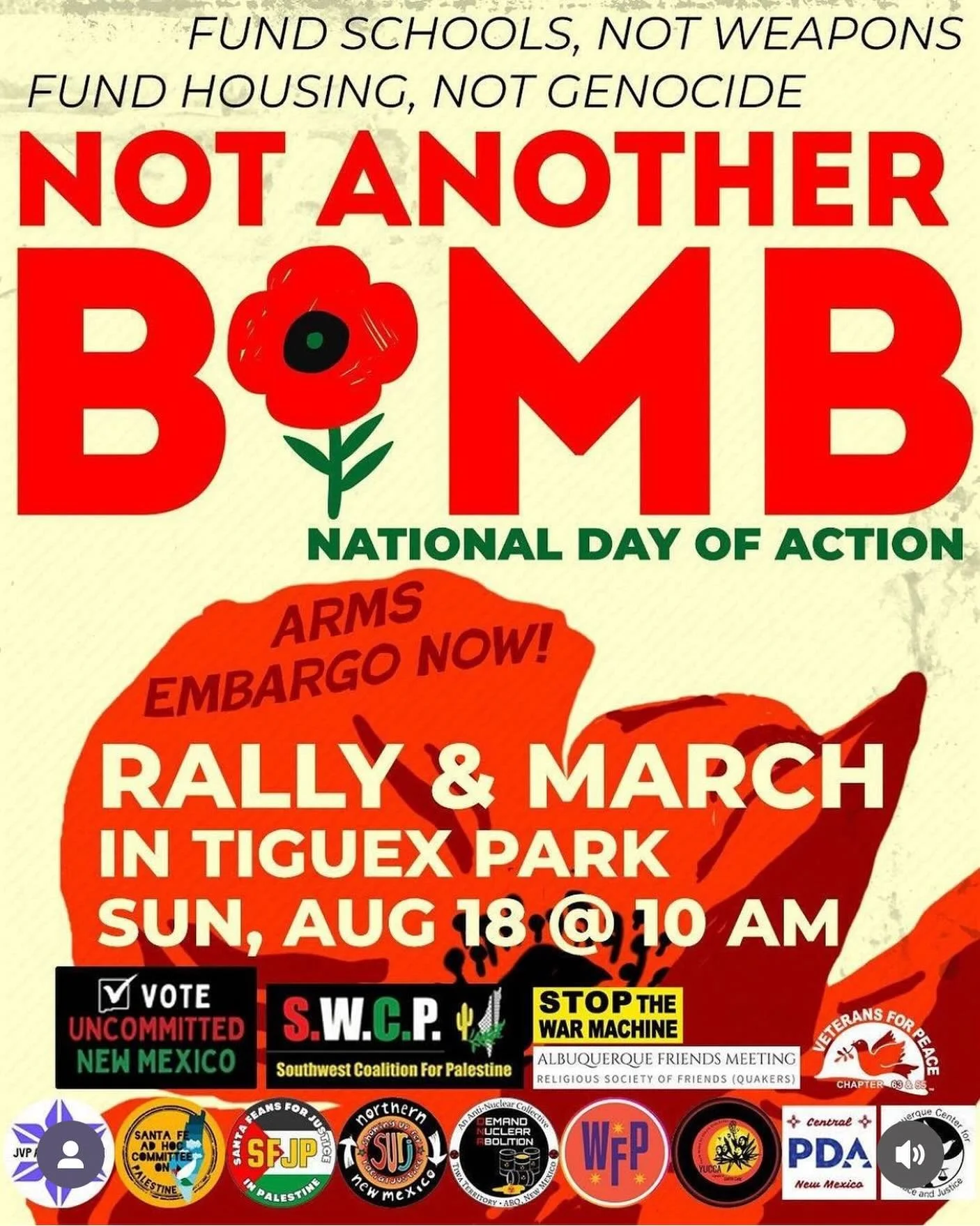 Tiguex Park, Not another bomb national day of action,August 18@ 10 AM