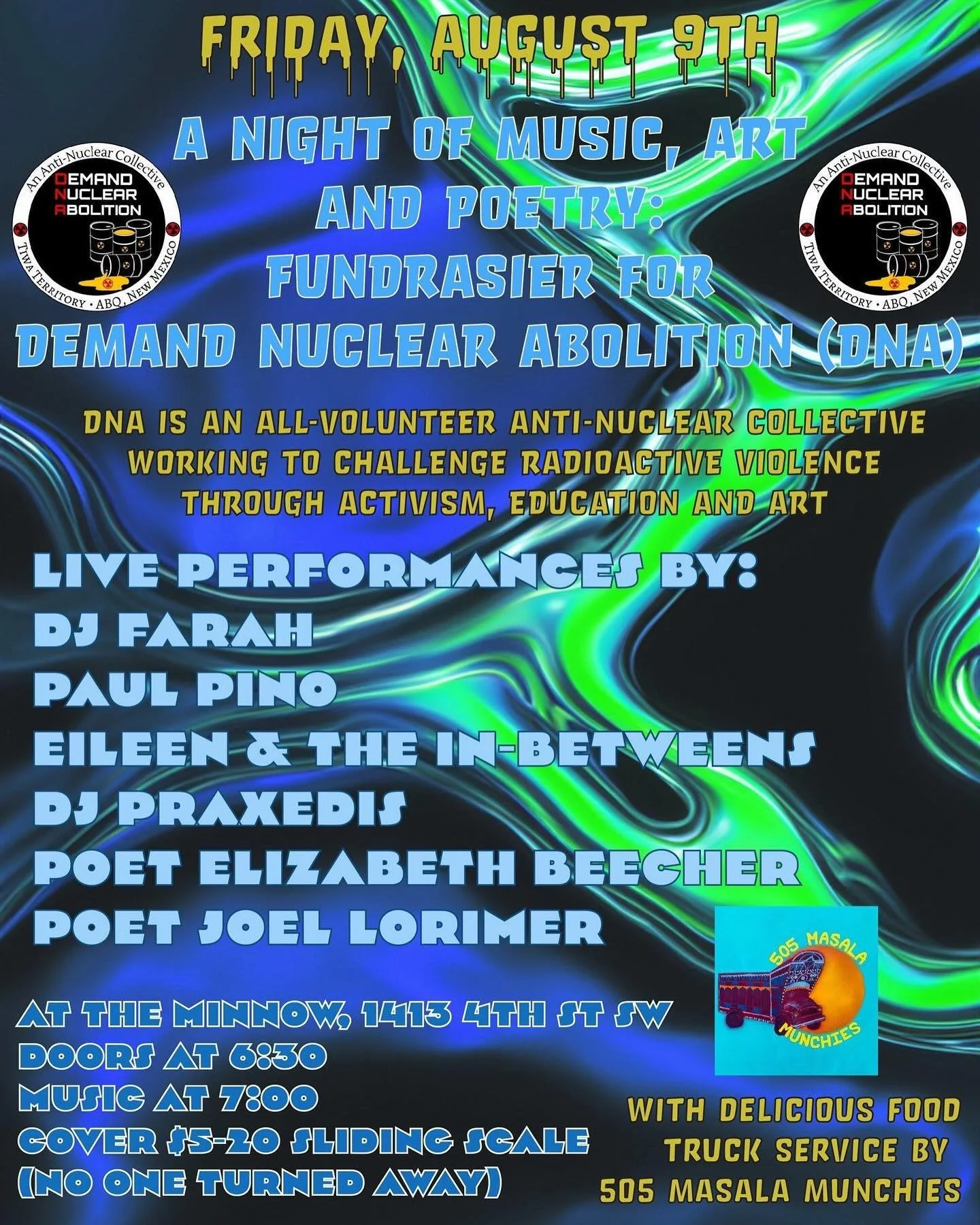 Fundraiser for Demand nuclear abolition, august 9 @ 6:30, minnow